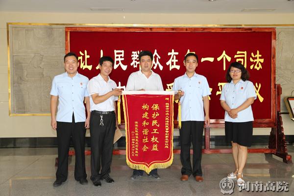 7月21日,鹤壁市中级人民法院的法官收到了一面“保护民工权益 构建和谐社会”的锦旗。案件已经调解结案一个月有余,尽管法官们再三表示办好案件是分内之事,当事人还是难耐感激之情,送来了锦旗表示感谢。