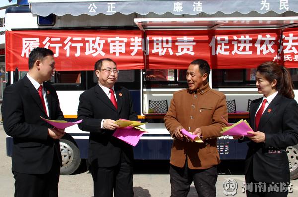 为进一步增强广大群众对行政审判工作的认识了解,提高群众的法治观念和行政诉讼意识,确保行政诉讼法得到切实有效的贯彻实施,3月27日上午,卢氏县人民法院干警走上街头,开展行政审判宣传和法律咨询活动。