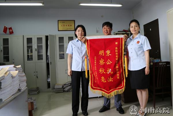2017年5月18日一大早,还没到上班时间,郭某手捧着一面锦旗在洛阳市老城区人民法院门口安静的等候。到张琼法官的办公室后,看上去很不善言辞的郭某又拗着非要亲自挑一个显著的位置着把锦旗挂在办公室的墙上,劝都劝不动。这可是张琼法官所见过的最执拗的当事人了。