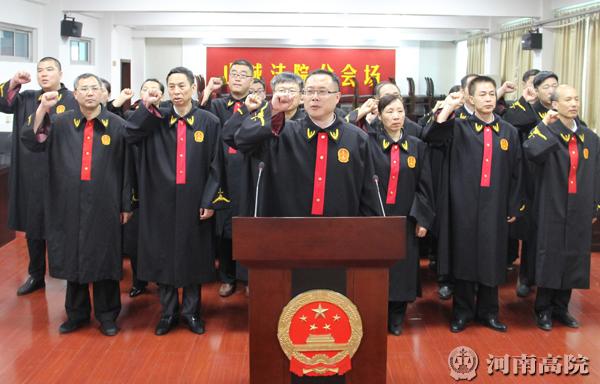 上午11时,宣誓仪式正式开始。奏唱国歌之后,山城区法院党组成员、政治处主任齐金萍宣读了《河南省高级人民法院关于批准鹤壁市两级法院首批法官入额的决定》。山城区法院党组书记、院长吕文涛带领首批入额法官面向国旗进行了庄严宪法宣誓。员额法官代表唐建做了表态发言。