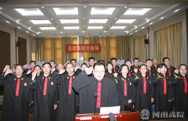 在庄严的国歌声中,宣誓仪式开始,24名法官在党组书记、院长晁旭的带领下,面向国徽,进行宪法宣誓。宣誓现场,该院还邀请到了召陵区委政法委、区人大、区政协的负责同志及区人大代表、人民陪审员临场监誓,召陵区法院首批员额法官宪法宣誓仪式的举行标志着该院司法改革工作进入新的阶段,全体入额法官将肩负起人民赋予的神圣使命,公正司法,司法为民,砥砺前行,努力实现“让人民群众在每一个司法案件中都感受到公平正义”。
