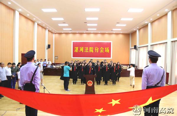 宣誓仪式在雄壮嘹亮的国歌声中开始,湛河区法院党组书记、院长王民克带领23名首批入额法官面向国旗进行庄严宣誓。