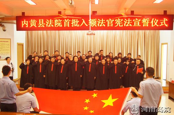 “我宣誓,忠于中华人民共和国宪法,维护宪法权威,履行法定职责,忠于祖国、忠于人民、恪尽职守、廉洁奉公,接受人民监督,为建设富强、民主、文明、和谐的社会主义国家努力奋斗!”6月1日,内黄县人民法院举行了首批入额法官宪法宣誓仪式,内黄县人大常委会主任裴喜拴,县委常委、组织部部长谢东,县委常委、政法委书记刘建勋,县人大常委会副主任鉴洪君,县政府副县长狄拥军参加仪式。