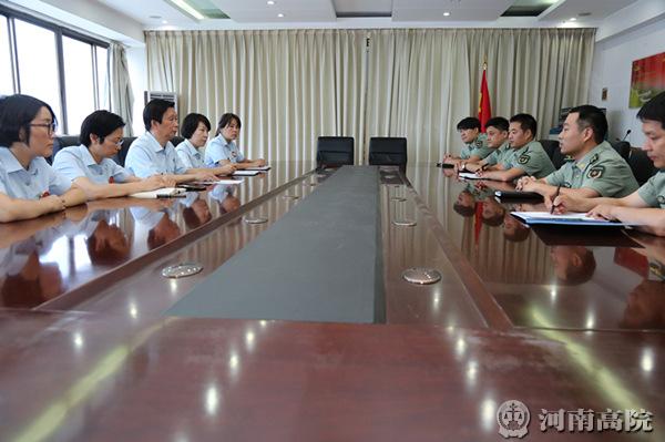 6月22日下午,二七区人民法院组织干警到二七区武装部召开集中开展庆祝建军九十周年系列涉军维权活动专题座谈会,就更好地为驻地官兵提供优质法律服务进行座谈。