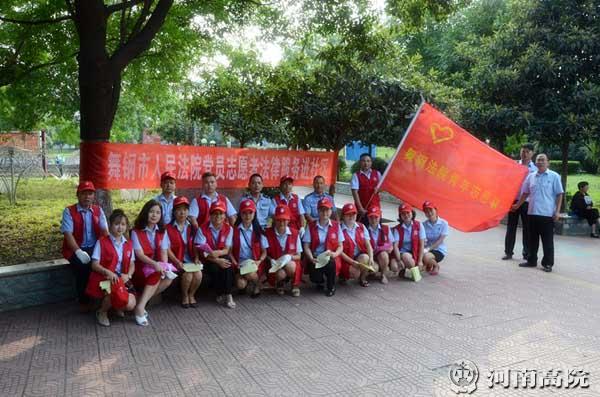 8月14日下午,舞钢市人民法院党员志愿者来到垭口鑫源社区,同垭口街道办事处的志愿者一起开展法律服务进社区活动。这次活动主要内容有两项:一是为社区居民发放法律宣传页,普及法律知识;二是为社区居民清理社区垃圾,给居民一个良好的生活环境。
