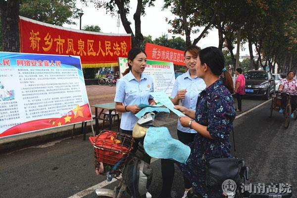 9月19日上午,新乡市凤泉区人民法院在文化广场举办以“网络安全为人民,网络安全靠人民”为主题的网络安全宣传周启动仪式,并同时开展“全国科普日暨社会科学普及周”宣传活动。
