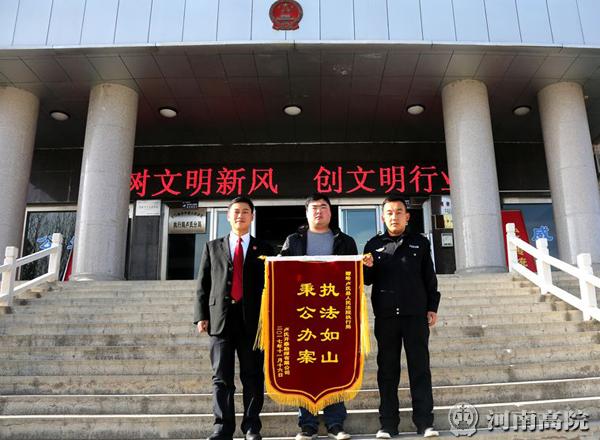 卢氏法院受理该执行案后,执行干警及时向三门峡市鹏鑫矿业有限公司送达了执行通知书、报告财产令、限制高消费令,并告知拒不履行的法律后果。在强大的执行压力下,三门峡市鹏鑫矿业有限公司很快履行了第一批工程款及利息116000元。为感谢卢氏法院执行干警的强力执行,卢氏县开泰勘探有限公司专门请人制作了一面锦旗送到法院,于是便出现了文章开头的一幕。