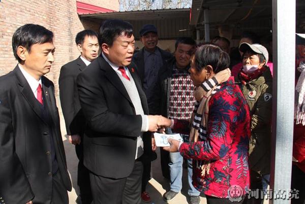 11月26日上午,柘城县法院院长张书勤、执行局局长李朝胜深入12名农民工家中,给农民工吴某某、王某某、刘某某等送来了9.2万元执行款款。时隔两年,12名农民工的工资终于拿到,站在寒风中的当事人满含泪水,紧紧握住张书勤院长的双手,执意将自己家刚摘好的辣椒送给领导,张书勤院长、李朝胜局长心领了农民工兄弟的好意,但婉拒了辣椒。