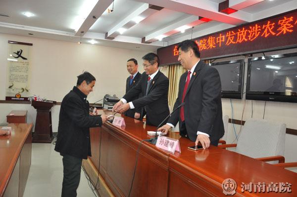 11月24日上午,台前县人民法院举行了集中发放涉农执行款仪式,现场为9户申请执行人发放涉农执行款40余万元。台前法院党组书记、院长刘勇出席发放仪式并为部分农户发放了执行款。