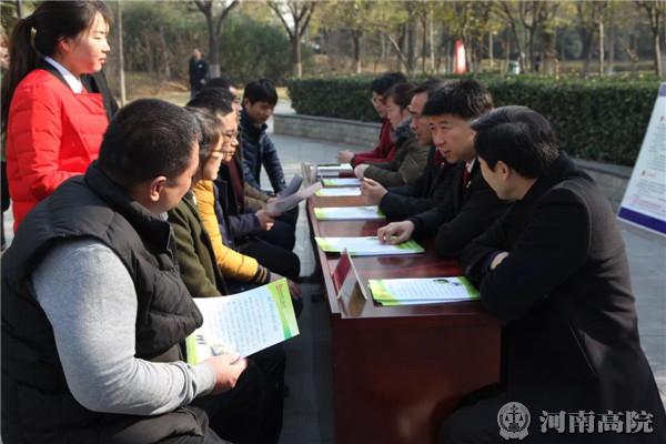 12月1日上午,郑州高新技术产业开发区人民法院党组副书记、副院长高山带领行政庭、经开区中心法庭法官,走进郑州经开区同乐广场,举行第九次“拖欠农民工工资案件集中办理”涉农维权宣传活动。