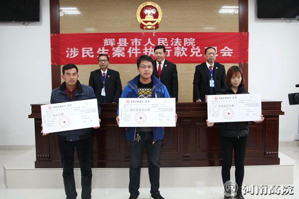 12月13日上午,辉县市人民法院执行局挑选了具有代表性的17起案件,进行执行案款集中发放仪式,发放案款现金达9124000元。通过这种现场发放的方式,向社会各界表明辉县市法院全力维护申请人合法权益、维护社会弱势群体合法权益的决心,彰显人民法院用两到三年时间解决执行难问题的坚定信心,为“让人民群众在每一个司法案件中都感受到公平、正义”做出不懈的努力。