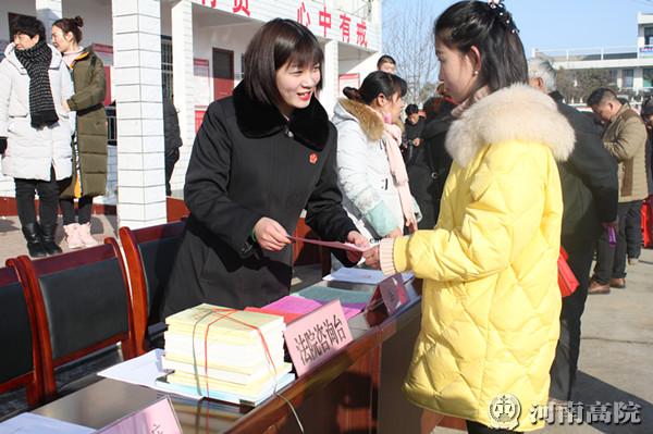 1月10日,社旗县人民法院来到该县唐庄乡马庄村党群服务中心,利用文化科技卫生“三下乡”活动的契机,为人民群众送上“法治大餐”,普及法律知识,培育法治信仰,增强人民群众尊法、学法、守法、用法的意识。