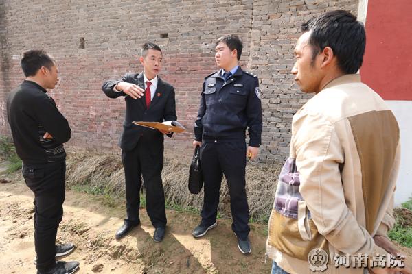 4月26日,安阳县人民法院执行干警深入崔家桥镇,依法对一起相邻纠纷案进行执行和解。至13时许,随着叮叮当当的响声将钢钎钉入地下,干警为双方当事人争议土地划定了界线。