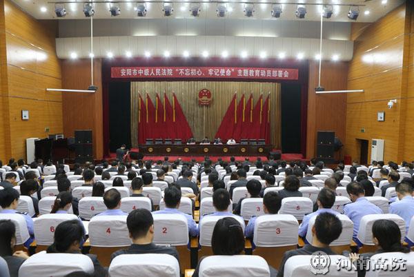 9月17日上午,安阳中院召开“不忘初心、牢记使命”主题教育动员部署会议。市委第六巡回指导组组长李明书、副组长史红峰等一行4人参加动员部署会,安阳中院党组书记、院长曹更生参加会议。