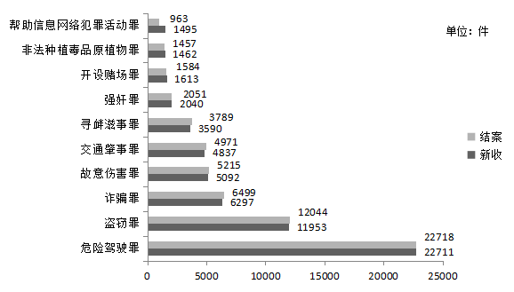 图4 刑事一审案件情况(收案前十案由排序)