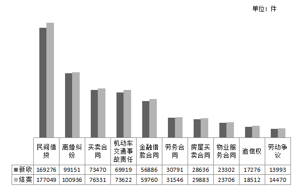 图6 民事一审案件情况(收案前十案由排序)