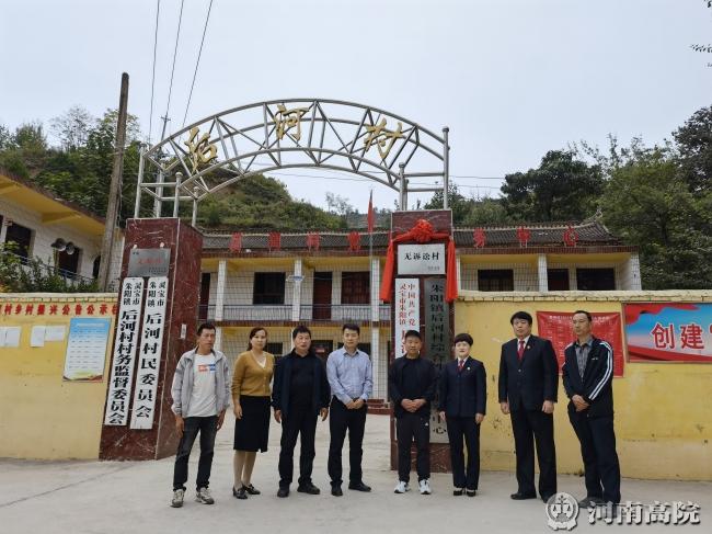 为扎实推动人民法院调解平台“三进”工作落地见效,切实发挥人民法庭在诉源治理中的审判职能延伸作用,全面提升基层社会治理现代化水平,2022年9月27日,灵宝市首个“无诉讼村”在朱阳镇后河村正式挂牌。灵宝市人民法院审判委员会专职委员张园园、朱阳镇党委委员人大主席杨超波、镇副科级领导张赞鹏、后河村党支部书记康艳军及部分村委参加揭牌仪式。