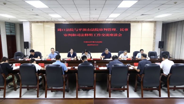 8月1日,周口中院党组成员、副院长刘俊荣一行7人,到平顶山中院考察交流审判管理、民事审判、司法释明中心建设工作。平顶山中院党组成员、副院长杨长坡出席座谈会并致辞。立案一庭、立案二庭、民一庭、民二庭、民三庭、审管办相关负责同志参加座谈。