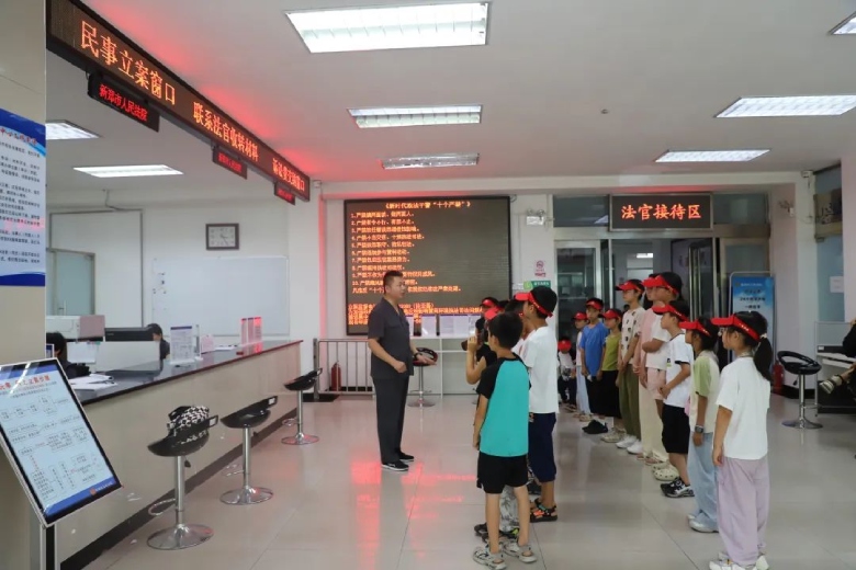 法徽闪耀,童心向法。为深化儿童友好城市建设,以法治护航未成年人健康成长,近日,河南省新郑市人民法院与新郑市妇联携手,组织儿童友好观察团,邀请全市中小学学生代表和部分家长共30余人,走进新郑法院开展公众开放日活动。通过“沉浸式体验﹢互动式普法”零距离感受司法魅力,在亲身体验中揭开法院的神秘面纱,为家校社协同普法注入鲜活力量,更为儿童友好城市建设增添法治光彩。