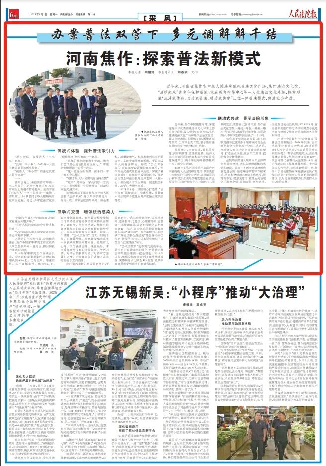 近年来,河南省焦作市中级人民法院依托宪法文化广场、焦作法治文化馆、“法护未来”青少年保护基地、家庭教育指导中心等一大批法治文化阵地,探索形成“沉浸式体验、互动式普法、联动式共建”三位一体普法模式,促进社会和谐。