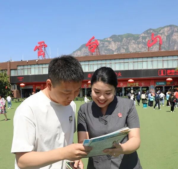 除了“救火式”维权,苗培更注重“治未病”。每逢节假日她都在景区入口处设立“云台山旅游法治驿站”,蓝底白字的标牌上,“旅游维权、法律咨询、风险提示”三个服务窗口一目了然。
