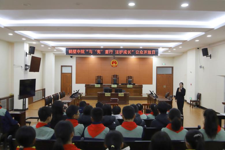 12月4日是第十二个“国家宪法日”。当天上午,鹤壁中院举办“与‘宪’童行 法护成长”公众开放日活动,鹤壁市湘江小学、天赉小学、职业技术学院共70余名师生“打卡”法院,沉浸式感受宪法精神。