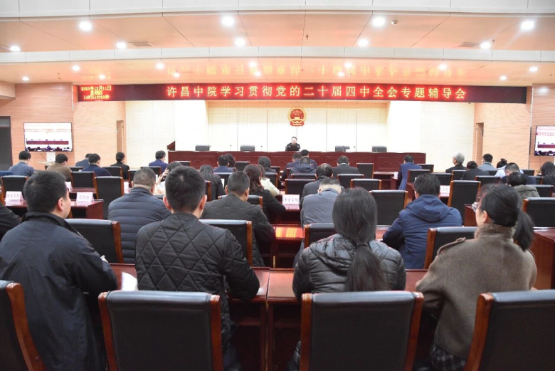 为深入学习贯彻党的二十届四中全会精神,践行习近平法治思想,12月11日下午,许昌中院举行党的二十届四中全会精神专题辅导会,邀请市委党校教授董跃民为全体干警授课。许昌中院党组成员、政治部主任宋豪主持会议,许昌两级法院干警在主会场与分会场同步参会。