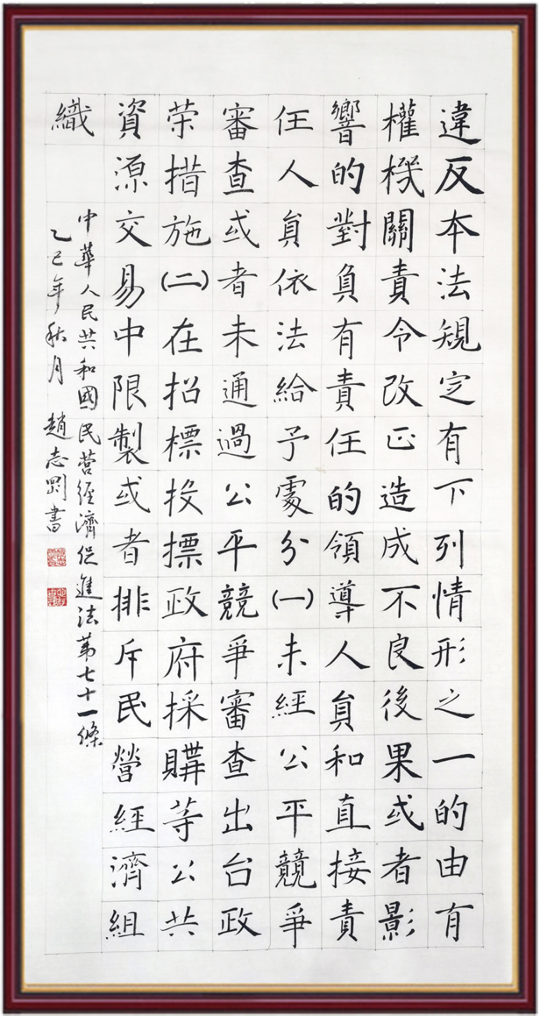 书·法 赵志刚:民营经济促进法第七十一条