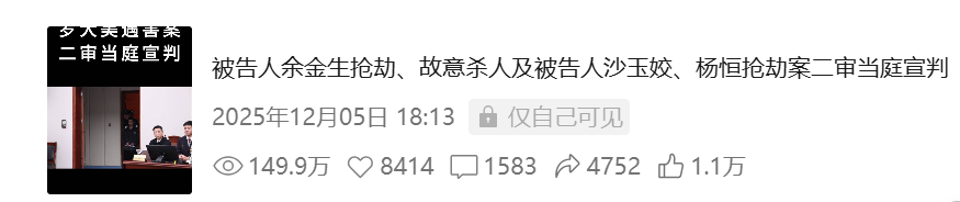 阅读量149万,点赞和转发量2万,网友热评“让正义以迅疾有力的姿态降临,展现高效公正的司法担当”