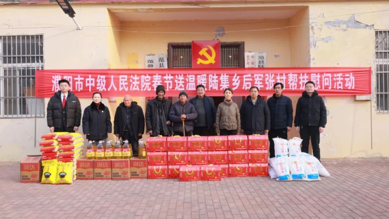 新春将至,暖意先行。2月5日,濮阳市中级人民法院党组成员、政治部主任耿惠萍带队前往范县高码头镇寇庄村、陆集乡后军张村开展春节慰问活动,为群众送去关怀与祝福。