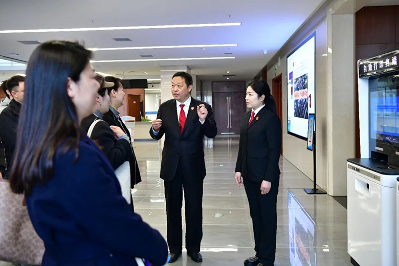 活动现场,律师代表实地参观了诉讼服务大厅、律师会见室、诉讼服务引导区、智能自助区、矛盾纠纷多元化解区和窗口立案区等功能区域,详细了解了网上立案、电子阅卷、跨域办理等便民举措,现场体验智慧法院建设成果。
